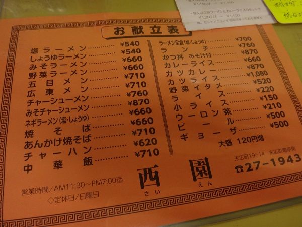 メニュー。