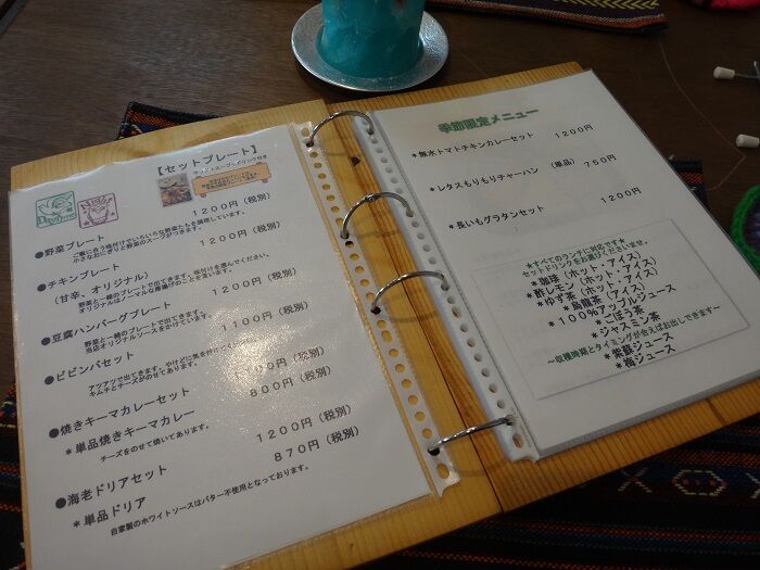 木の板にメニュー。