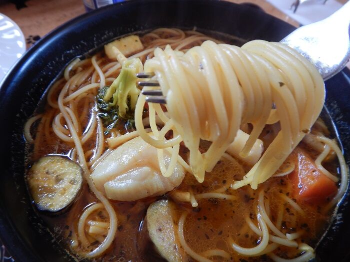 マリオのパスタ 魚介のスープカレーと妻のアサリと
