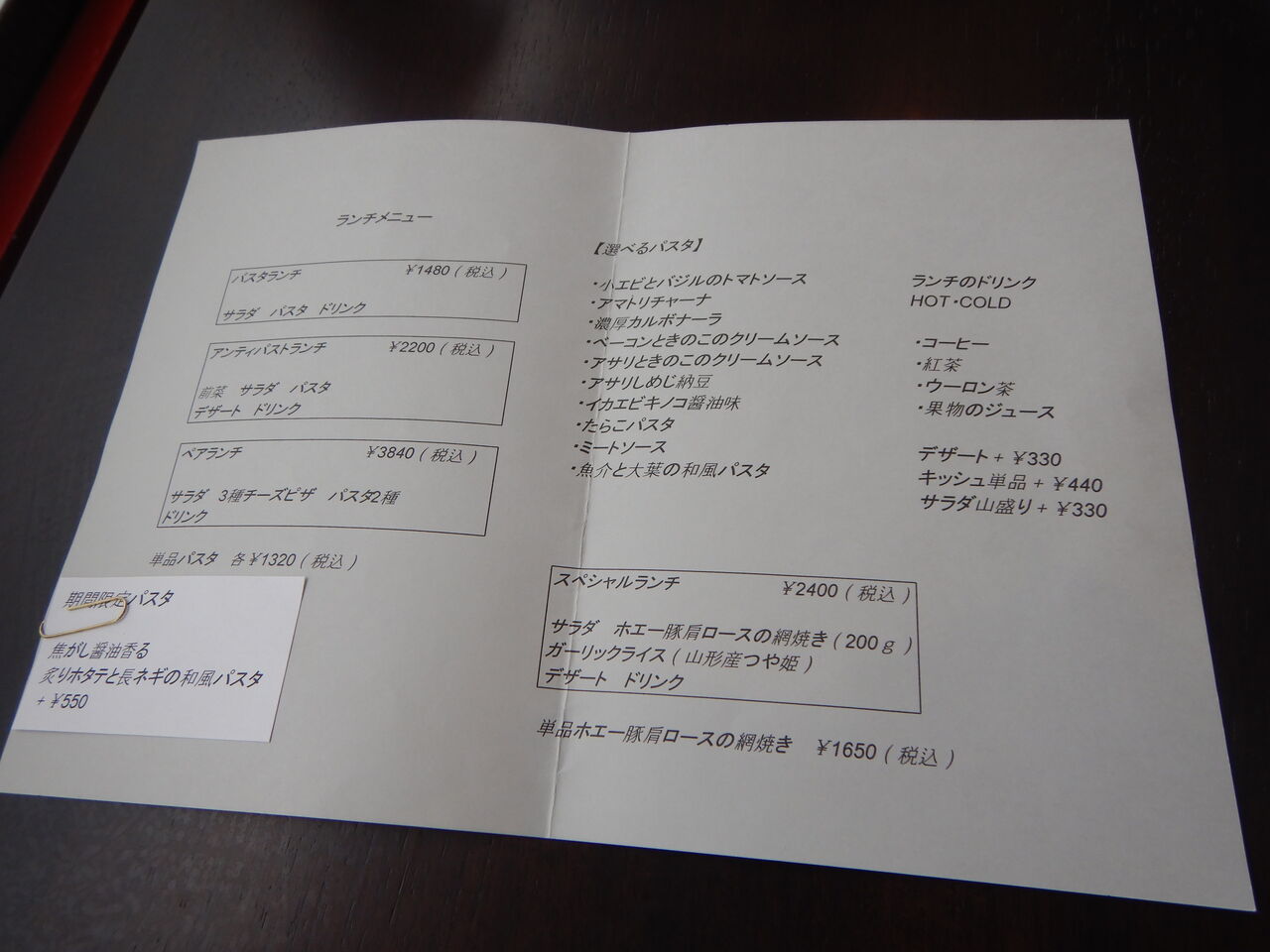 卓調とメニューの裏