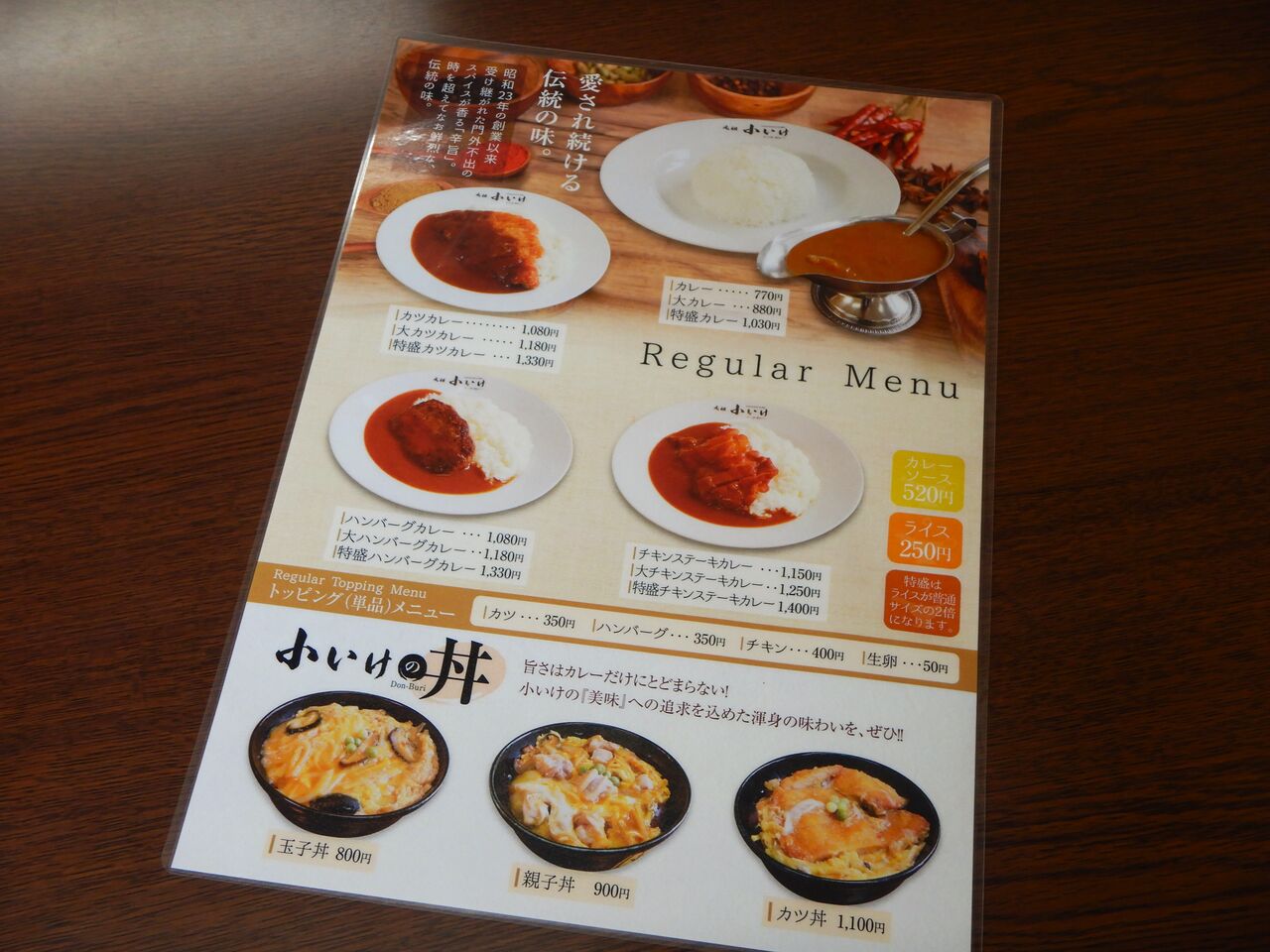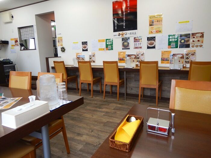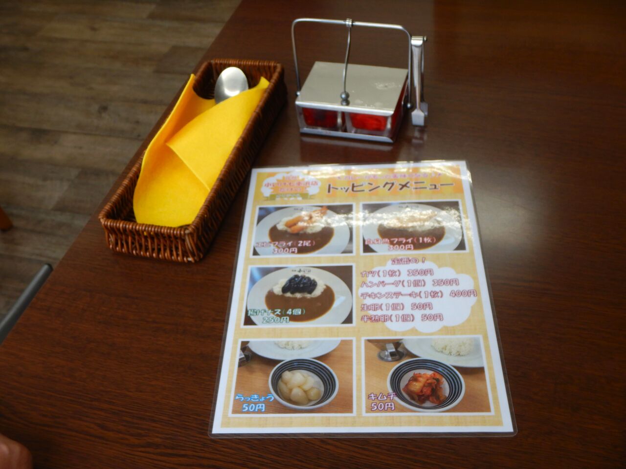 13時半に近い時間の、メニューとテーブル席