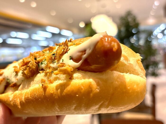 紙袋を取り外した「チーズソースフライドオニオンドッグ」