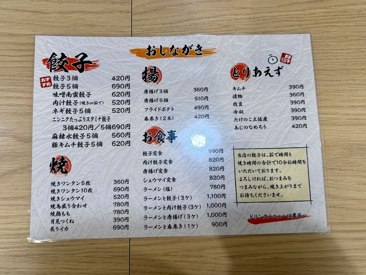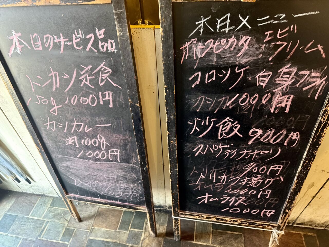 お店に入って左の黒板メニュー