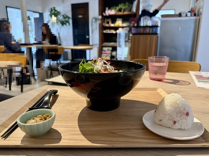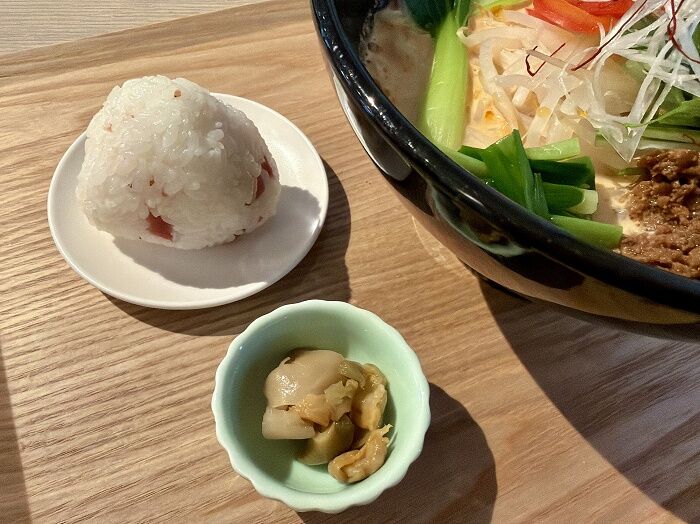 ライスに味噌汁香の物、小鉢付きで1,000円