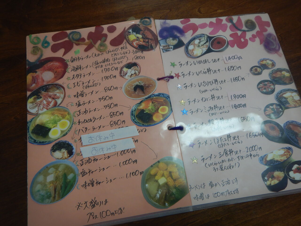 いかめし2つとラーメンは塩にして、1.400円