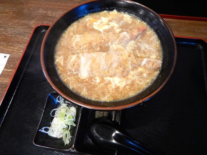 この「とじそば」は、えび天が2本も乗ってないか?