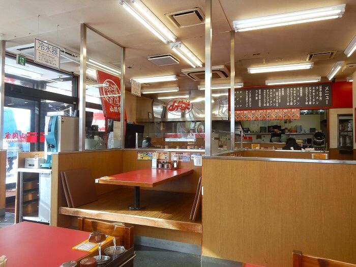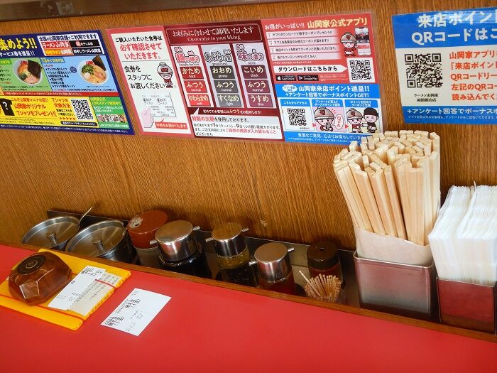券売機の上に「濃厚豚骨 山岡家」と、