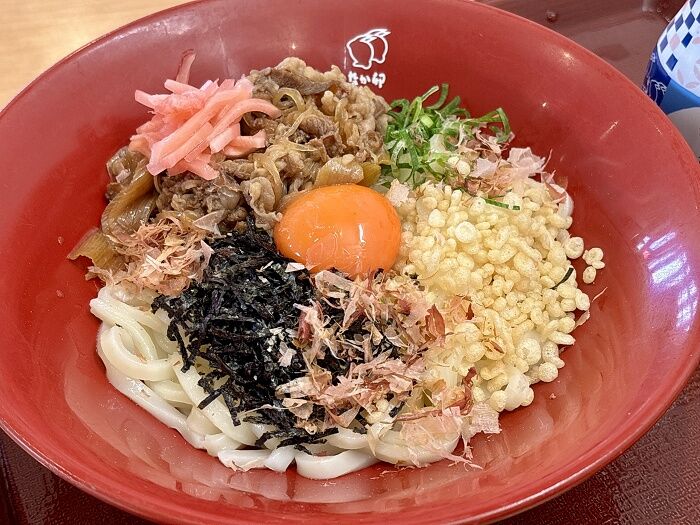 マリオのなか卯 函館昭和店の「たまかけ牛小鉢うどん」