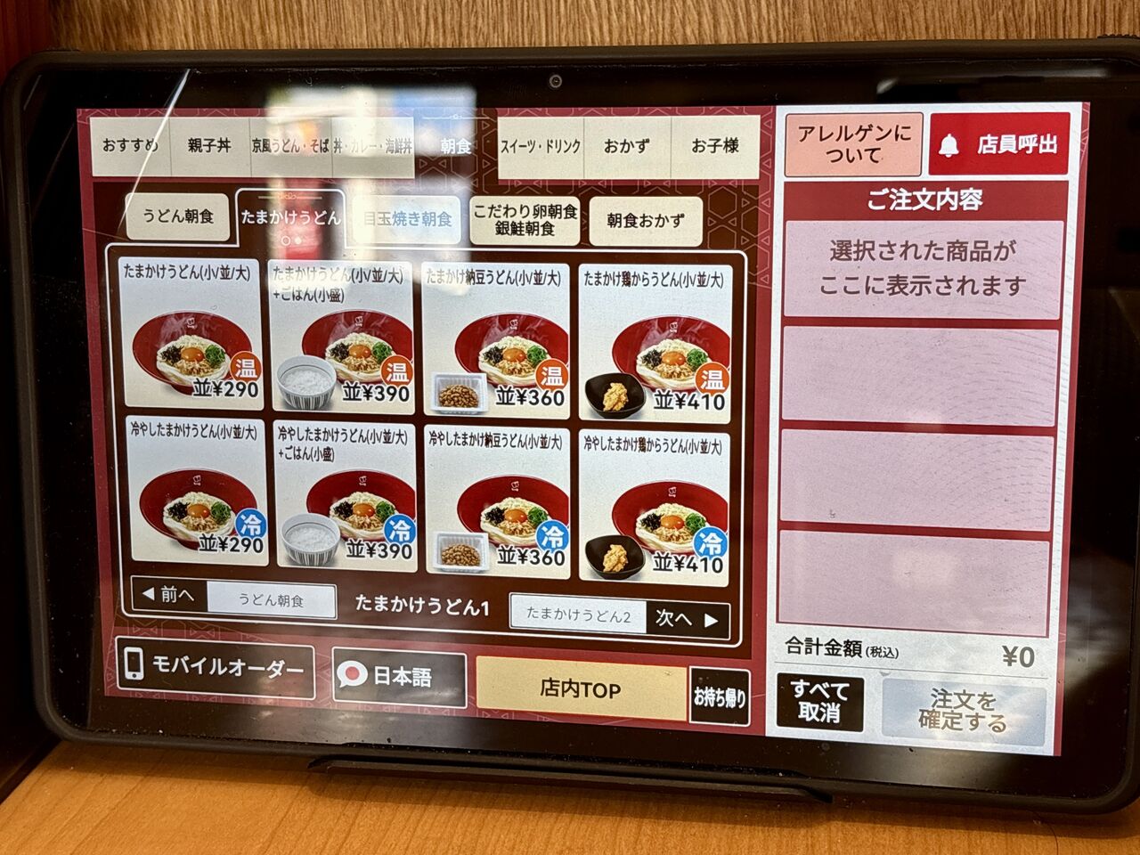 「たまかかうどん」朝食が~