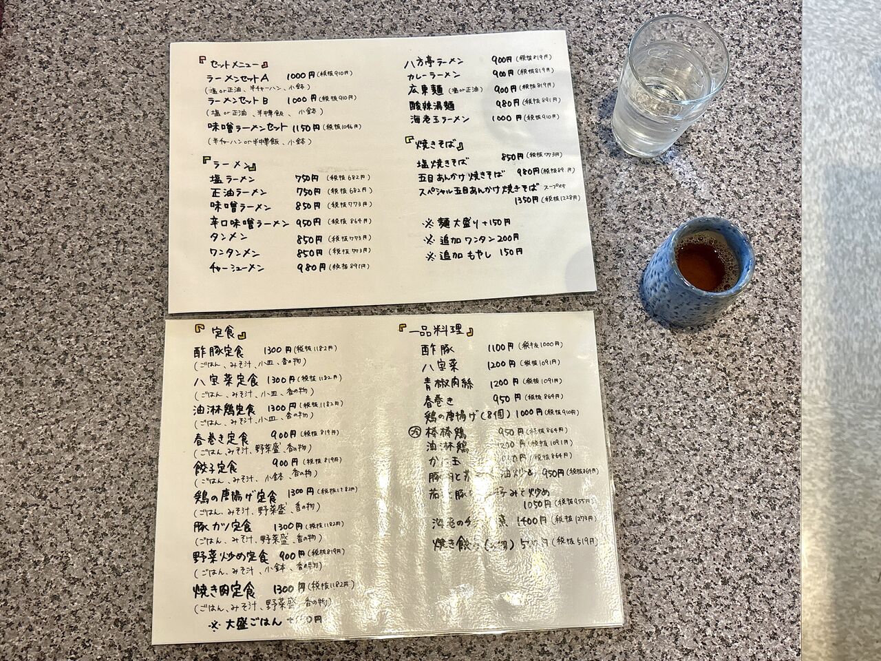 卓調とメニューの裏面他