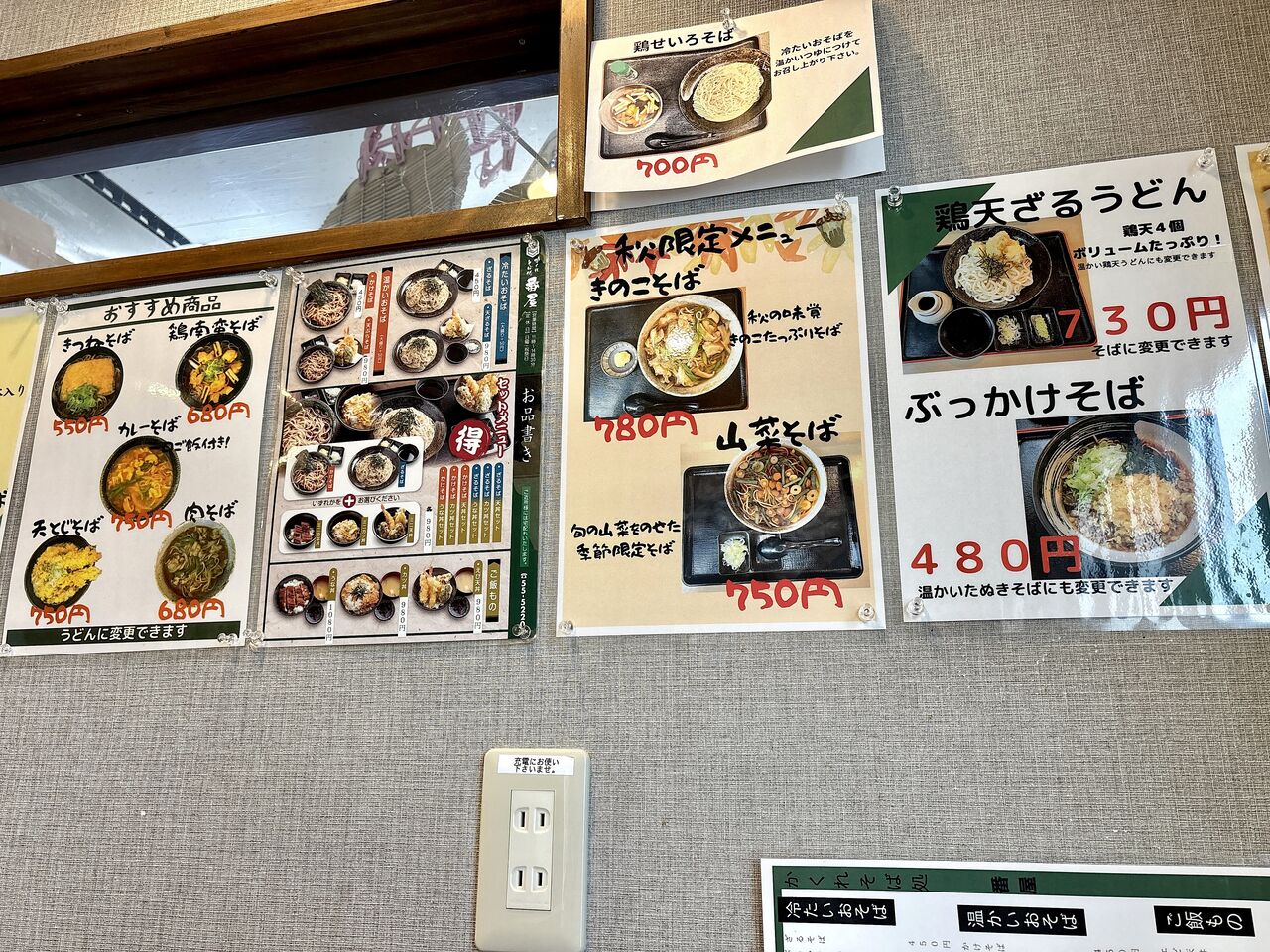 壁面のメニュー