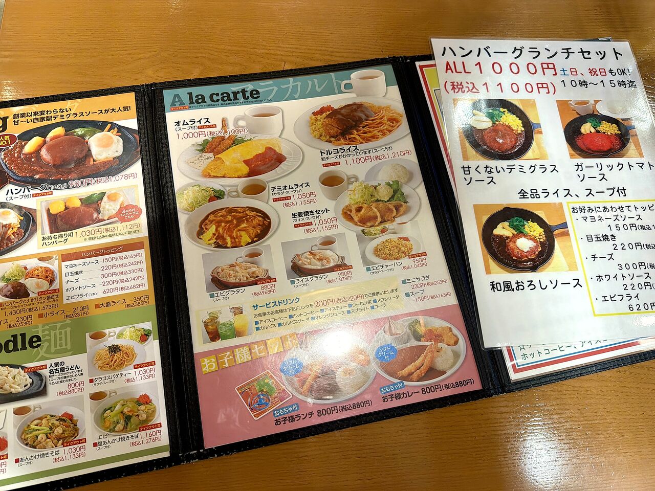 「エビフライ」とスープ付きで、1,100円