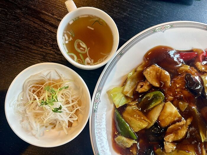 大根サラダと中華スープ付き