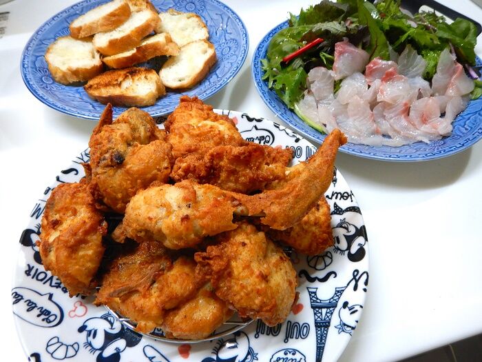 チキンは全く問題なくて、お刺身サラダも好評