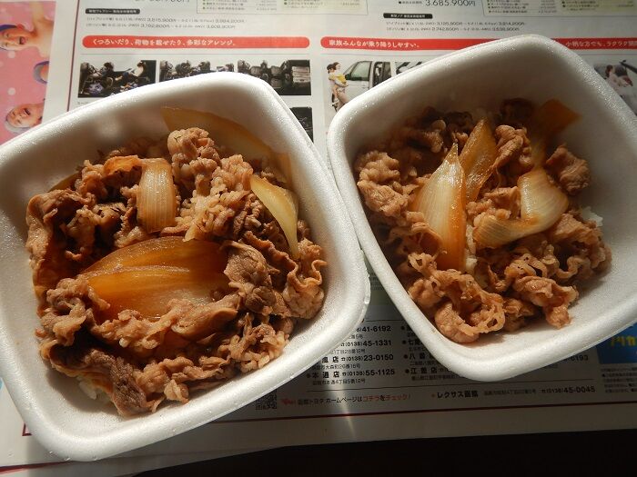 当日の夜、「牛丼並盛弁当3個で税込み1,080円
