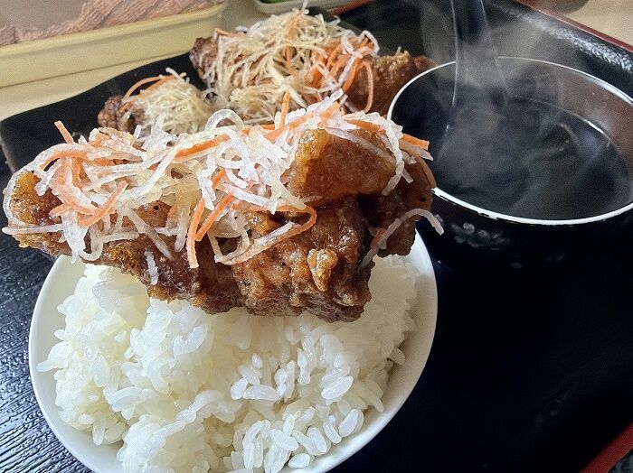 4本のぶっとい唐揚げに、山になったライスが