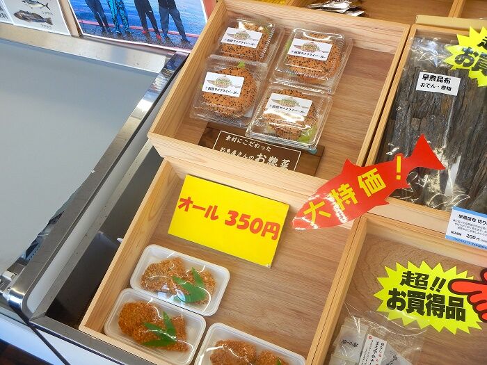 乾物等の海産がズラリと並ぶ、店内