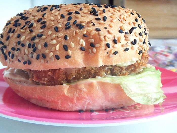 白黒ゴマがたっぷりのバンズで、600円