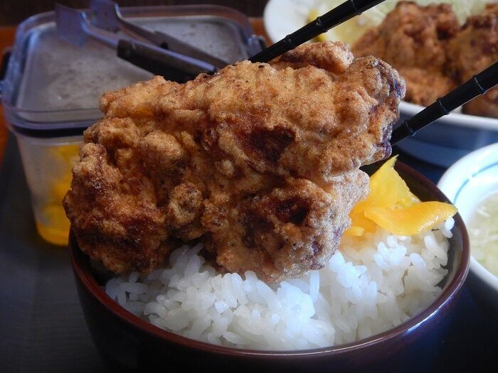 刻まれた「から揚げ」が舌で踊る