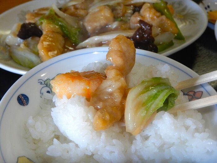 中華 幡龍(ばんりゅう)のあんかけ焼きそばで、2up