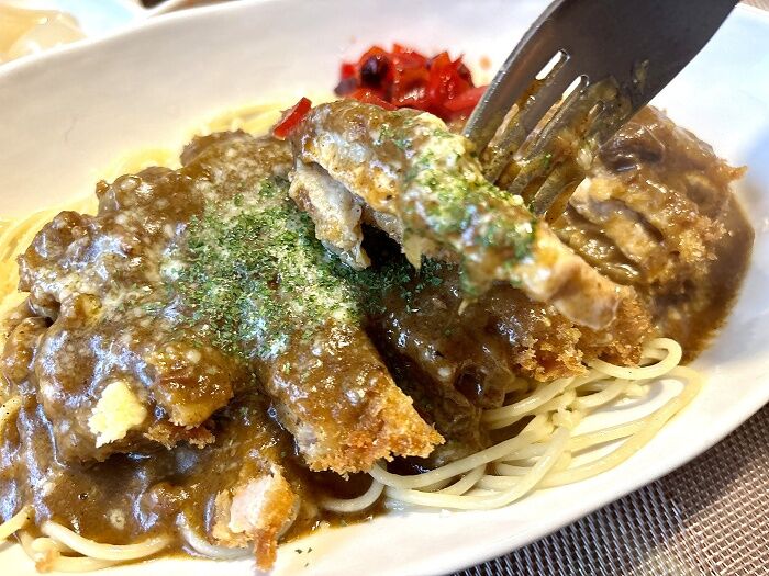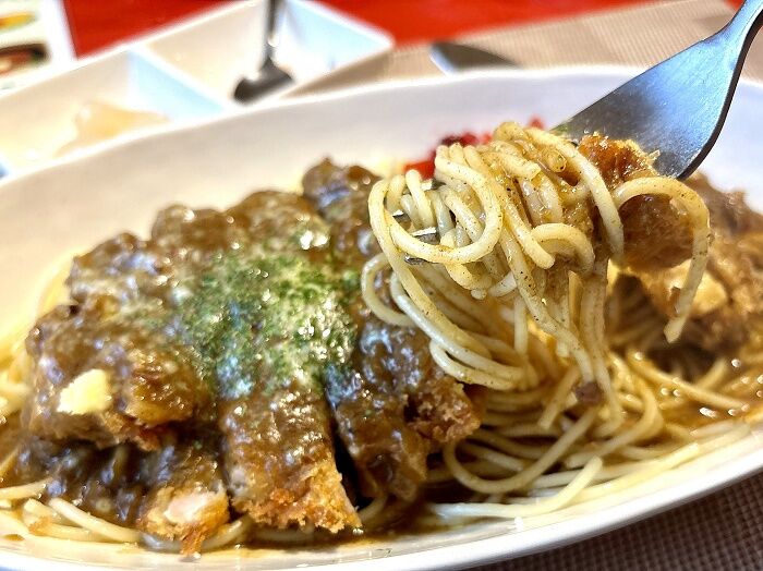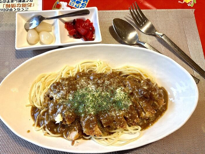 マリオの「洋食の ごくらく亭」のカツカレースパゲティ