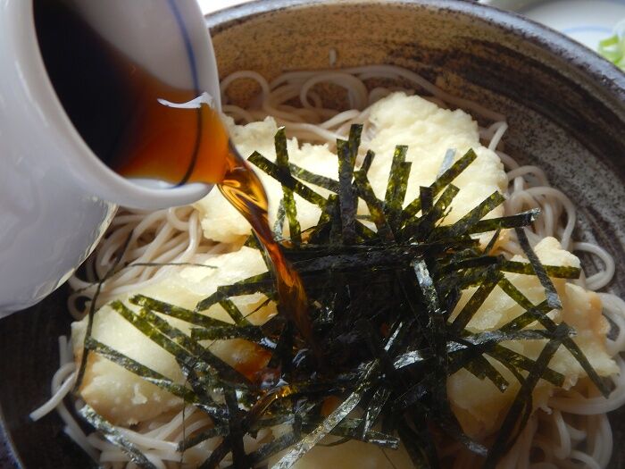 海苔の下、いか天の間に「大根おろし」が見える