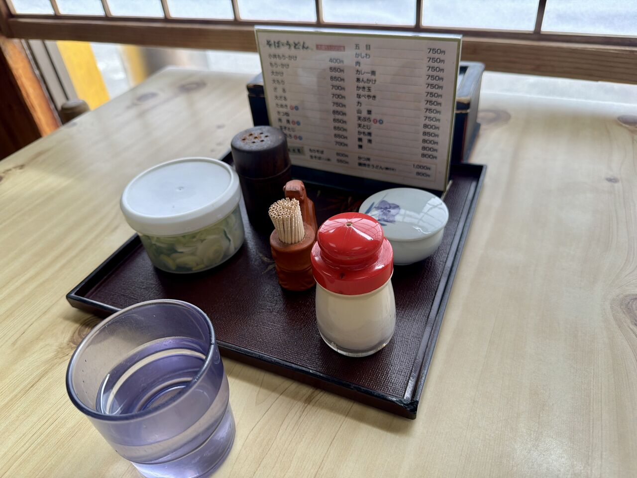 メニューの表面と卓調