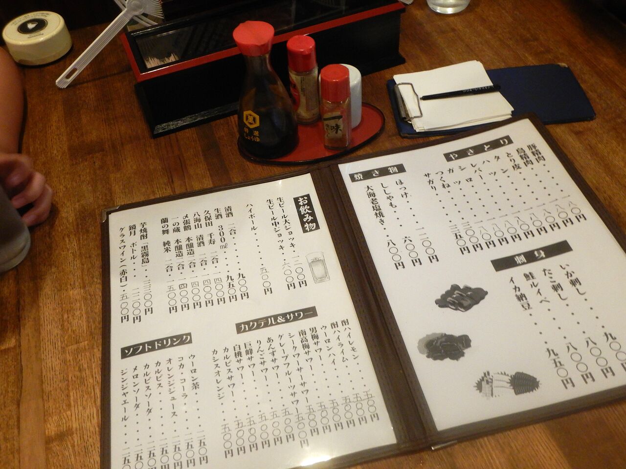 やきとりとドリンクメニューと卓調