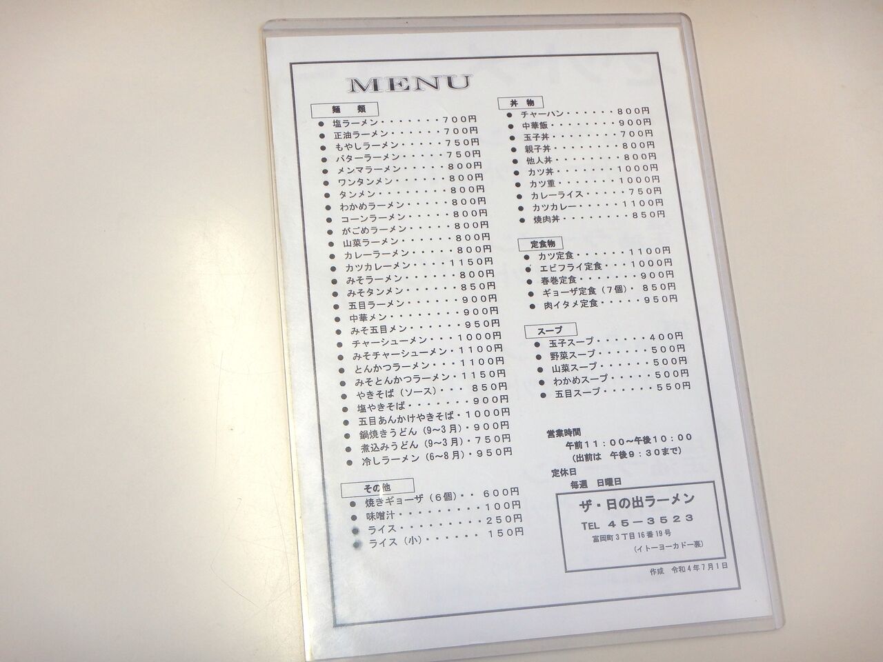 函館市富岡町3丁目の「ザ・日の出ラーメン」