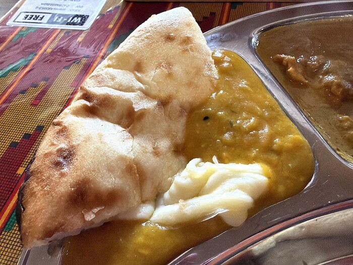 えんどう豆のカリーにチーズナンをイン