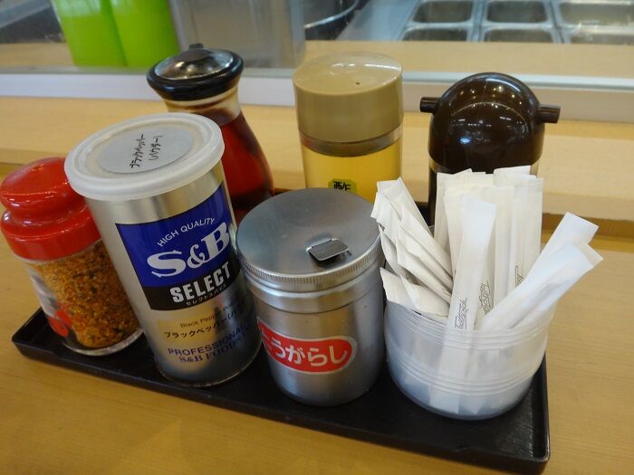 カウンターの調味料。