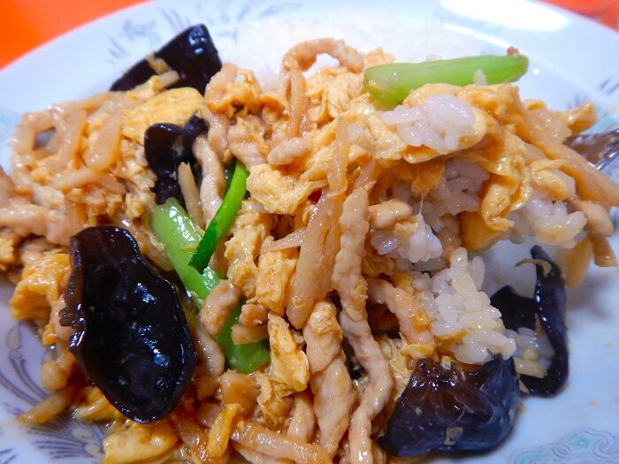 玉子と肉、キクラゲと小松菜が過不足なく