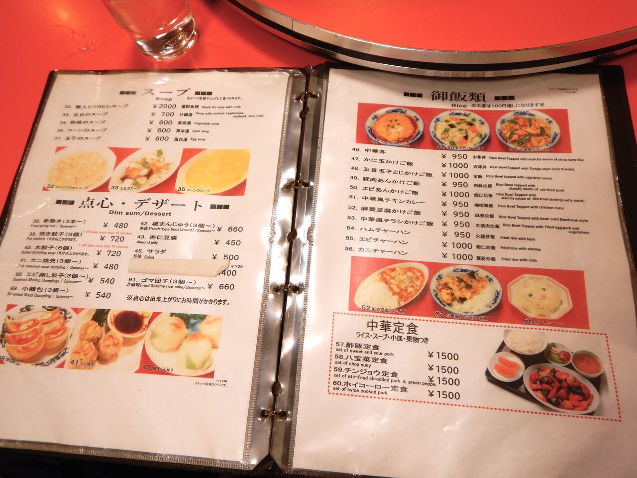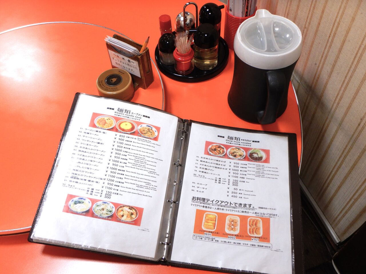 卓調と麺類のメニュー