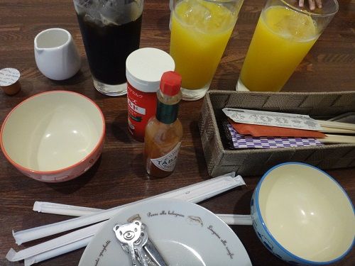 先着したドリンクと調味料。