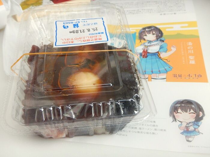 やきだんご 銀月の温泉むすめ掛け紙付きやきだんごで、