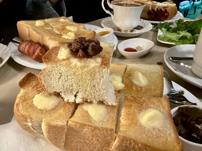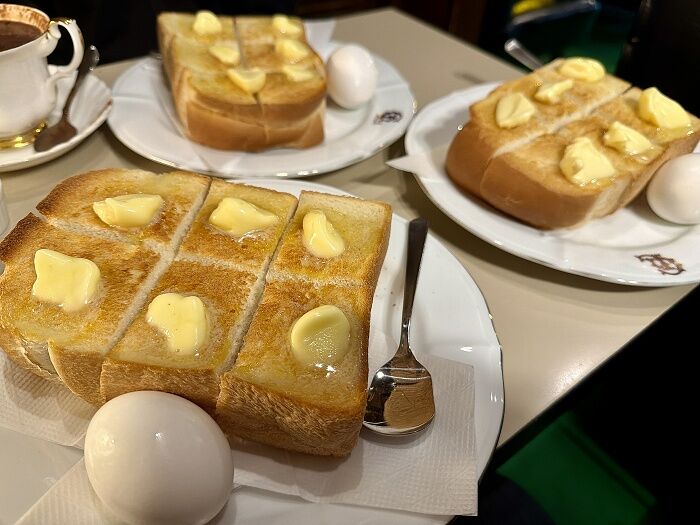 スタッフさんにモーニングセットを「厚切り」で3人前
