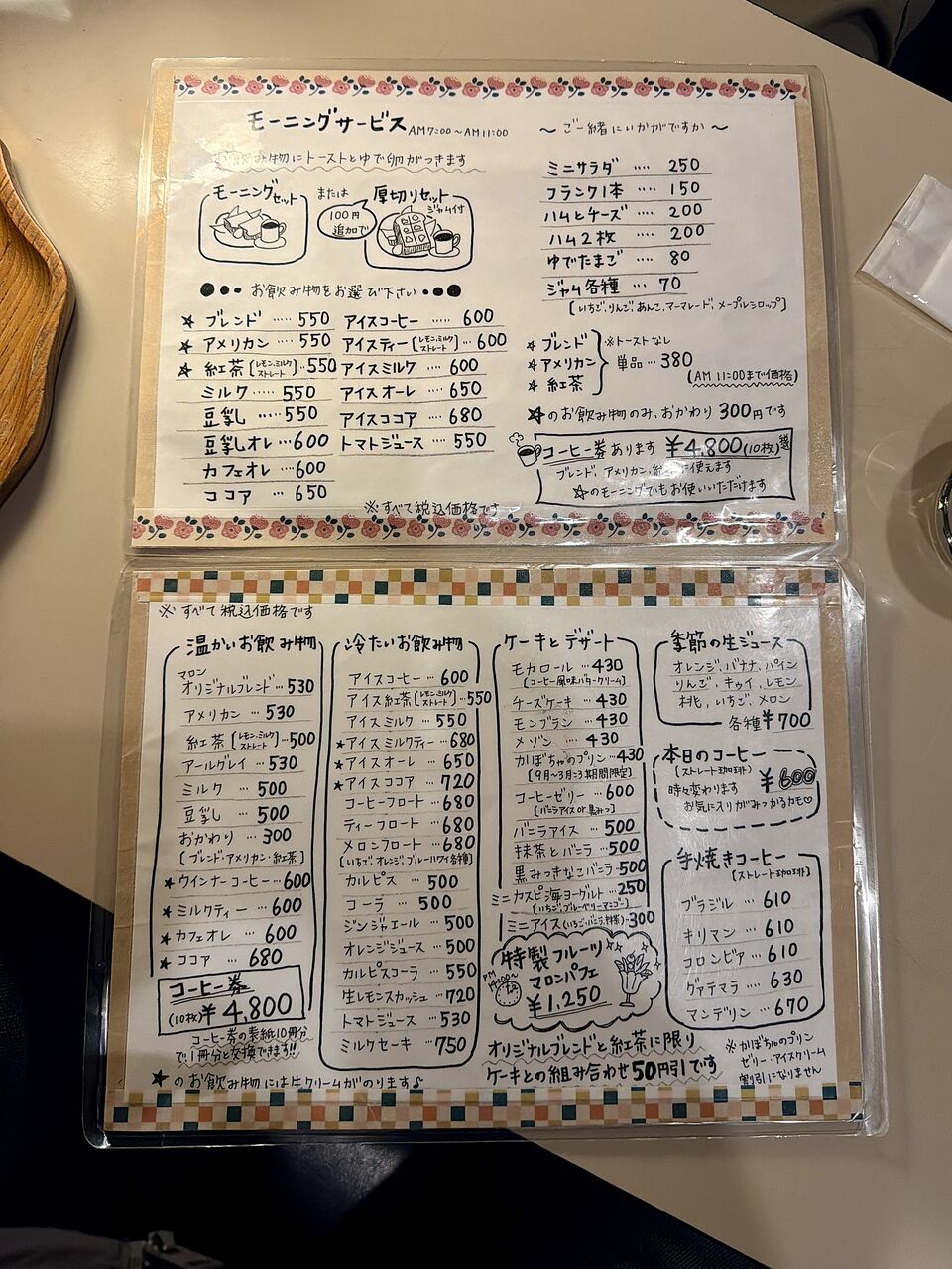 ともかく喫茶マロンのメニュー
