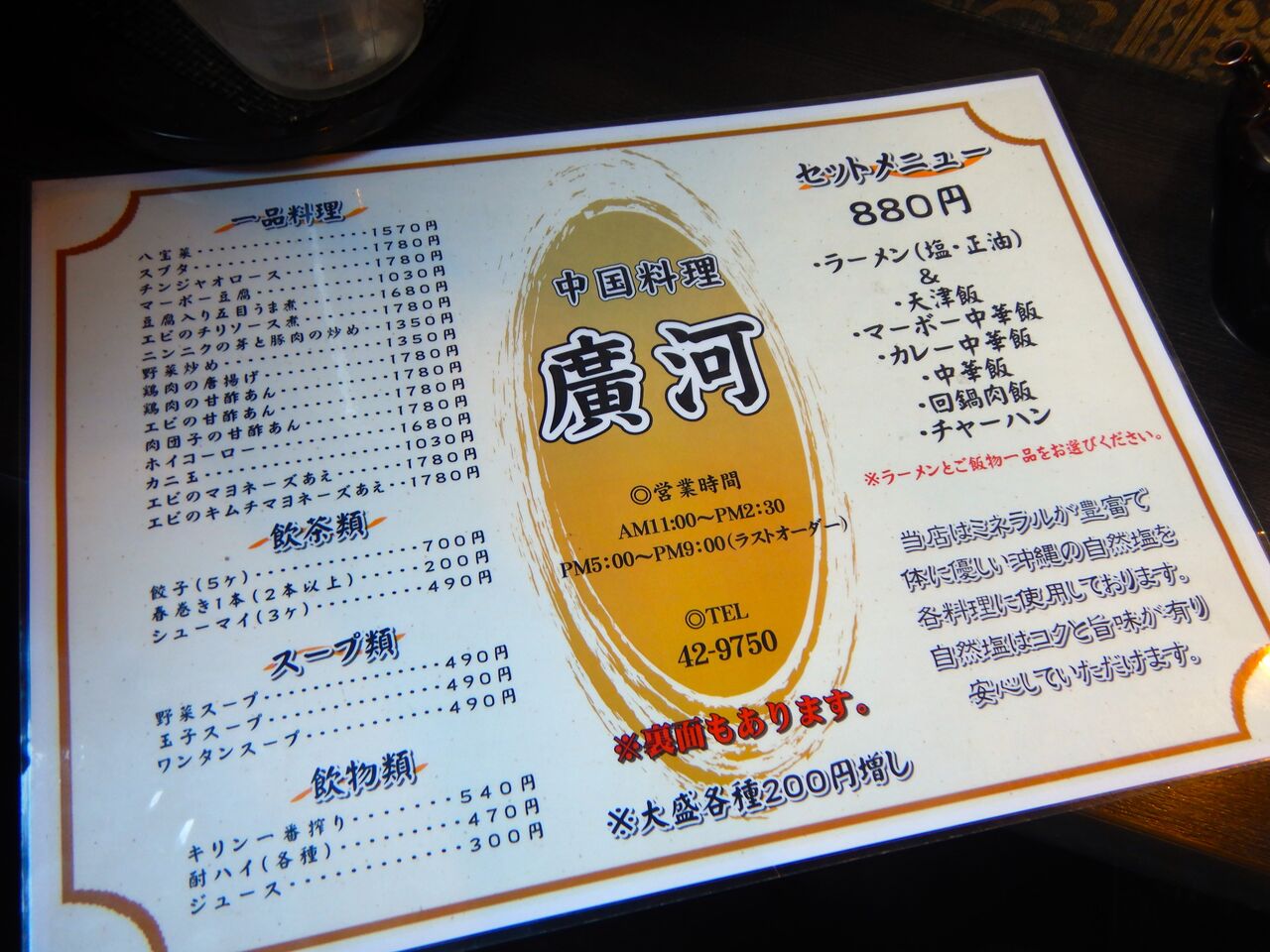 マリオの中国料理廣河のセットメニュー