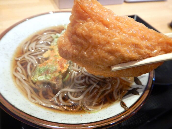 立ち喰いそば新橋のちくわ天そばと五目いなりで